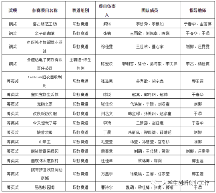 大赛历时半年。大创办利用16学时课堂教学,既完成了教学任务,同时完成创业计划书各部分撰写辅导。授课过程中、结束后直到决赛不仅完成项目孵化落地,也完成了校赛、省赛。首次采取固定团队模式,团队成员每人一个项目。通过积极调动学生参赛的积极性,培养了参赛学生的思辩能力和创新能力,我校15项复赛项目在路演、问辩、展示项目的严格评审中,提升了思维能力和动手能力,展示了团队团结协作、积极向上的精神风貌。