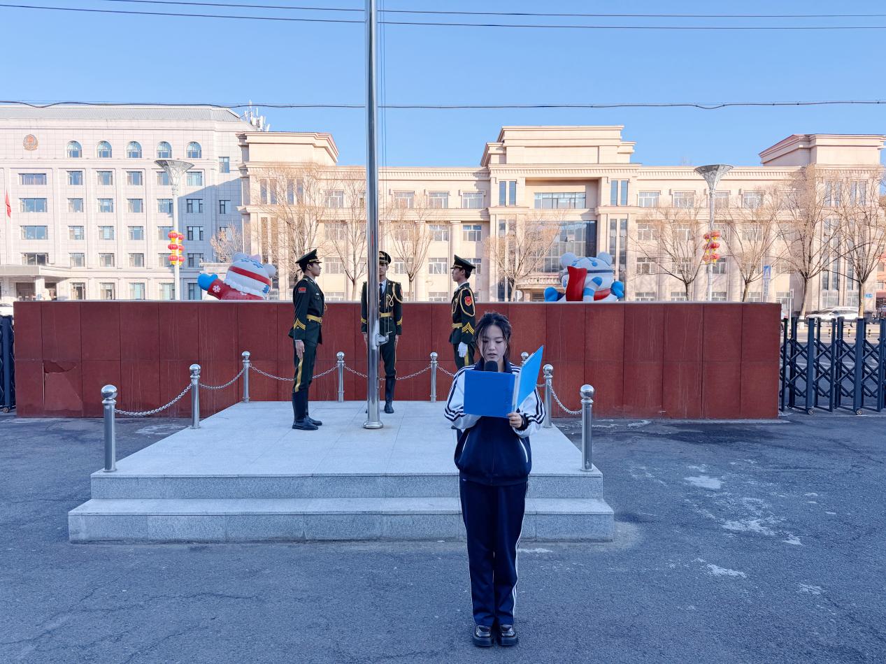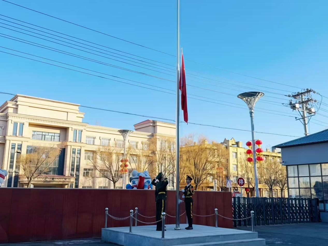 伴着激昂的出旗曲,国旗护卫队身姿挺拔、步履铿锵,护送五星红旗走向升旗台。雄壮的国歌声响彻校园,五星红旗冉冉升起,全体师生肃立注目、高唱国歌,将赤诚与信念融入庄严仪式。