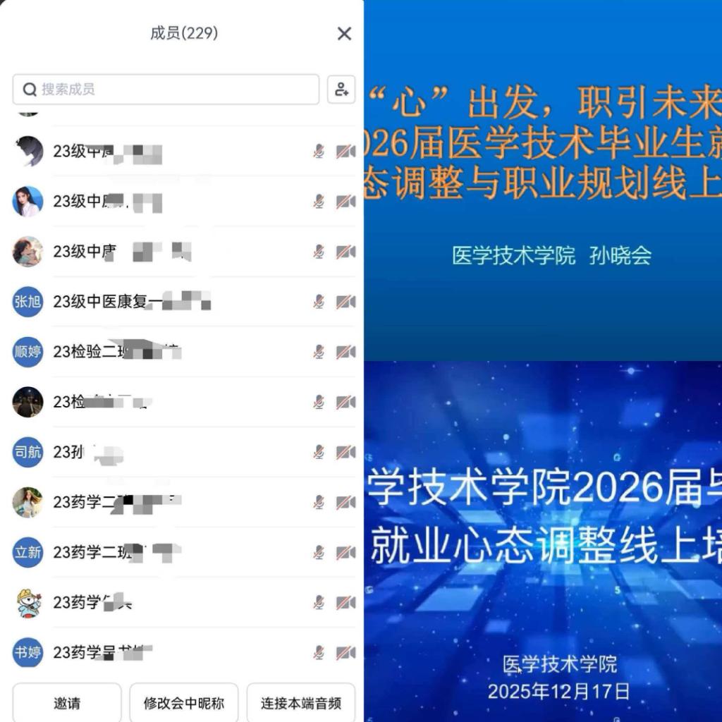 学院党支部牵头做好就业思想引领,于12月末组织2026届毕业生开展就业心态调整线上培训。前期完成专升本适配度与就业能力测评,精准掌握学生需求;培训中解读测评结果、分享优秀毕业生经验,党支部书记开展专题授课,引导学生树立理性就业观,同步指导简历制作、面试技巧,有效缓解就业焦虑,筑牢就业思想根基。