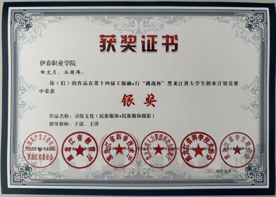 计算机应用技术学院电子商务专业学生田文月、丛国伟的《寻找文化(民族服饰+民族服饰摄影)》经过专家评审团严格评审和现场答辩的激烈比拼,最终荣获省赛银奖!实现我校“挑战杯”参赛获奖零突破!