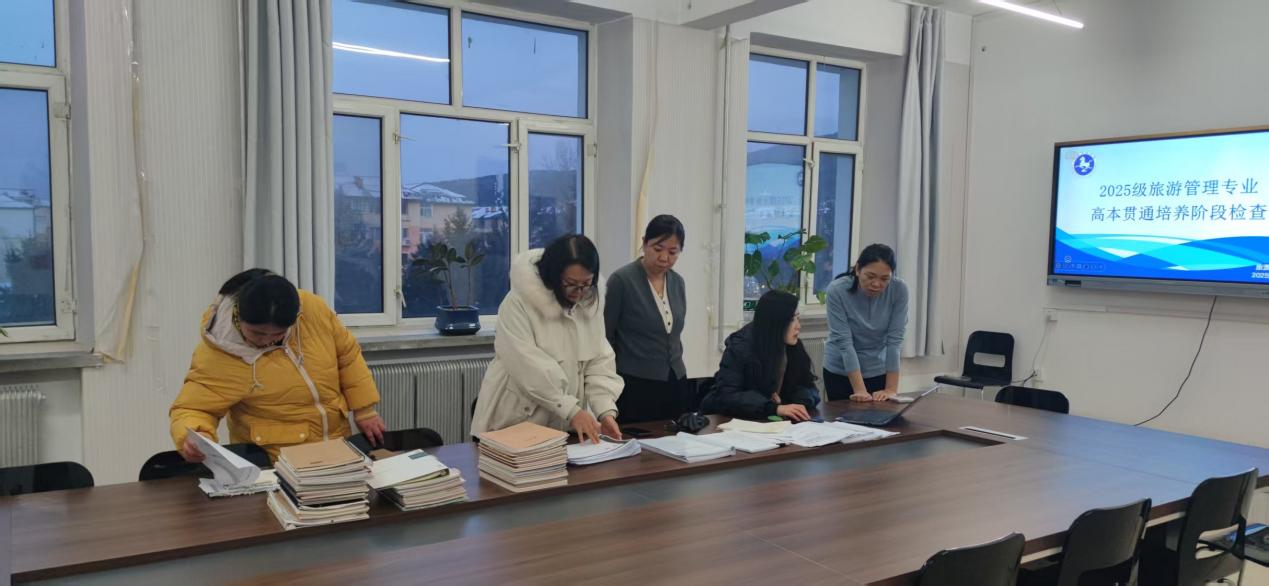 近日,伊春职业学院副院长韦立宏、教务处处长朱丹丹到旅游商务学院组织开展了旅游管理(高本贯通)专业中期教育培养检查工作,通过实地走访、材料审阅、师生座谈等方式,全面评估专业在人才培养、教学实施、实践创新等方面的阶段性成效,为优化贯通培养路径、提升育人质量提供重要依据。