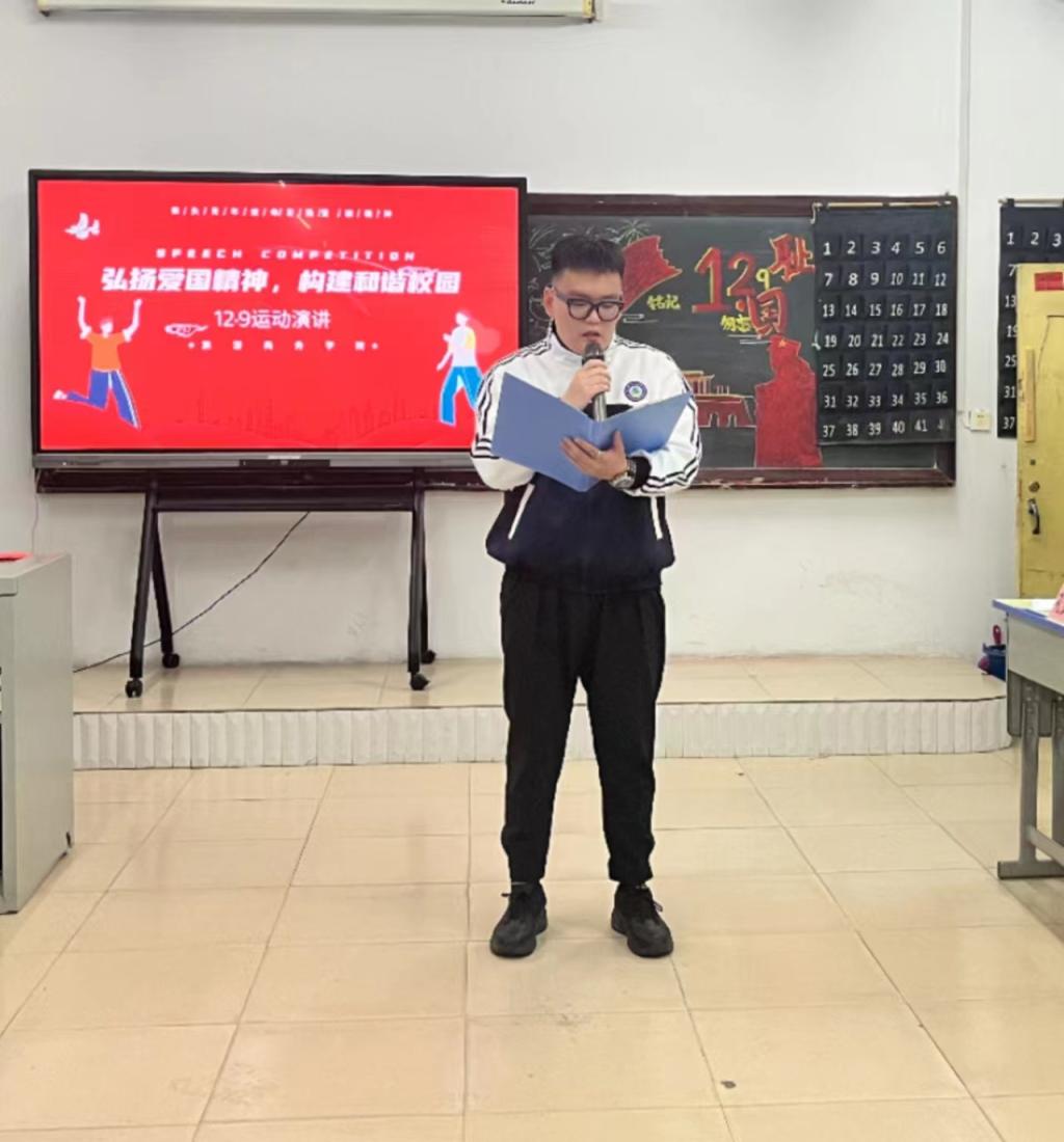 高举一二·九火炬,传承青春活力。为增强大学生爱国爱党情怀,提升民族自豪感,展现当代大学生良好的精神风貌。我院于12月9日举办以“弘扬爱国精神,构建和谐校园”为主题的演讲比赛。