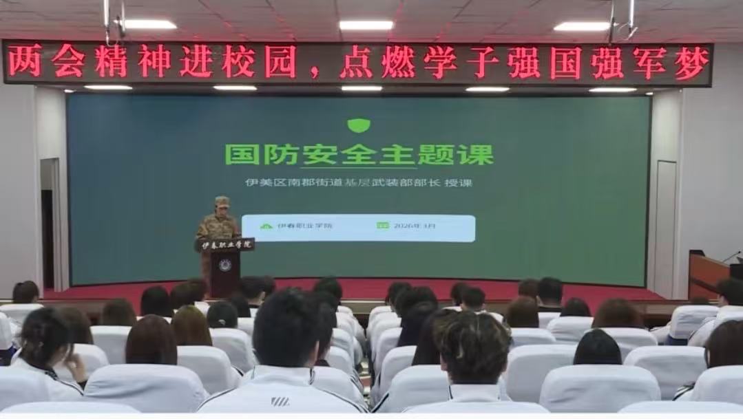 为深入学习宣传贯彻全国“两会”精神,推动新时代全民国防教育走深走实。近日,我校联合伊春市伊美区南郡街道共同开展以“增强国防观念 立志强国强军”为主题的国防教育课。通过政策宣讲与思想引领,引导青年学子筑牢国家安全意识。