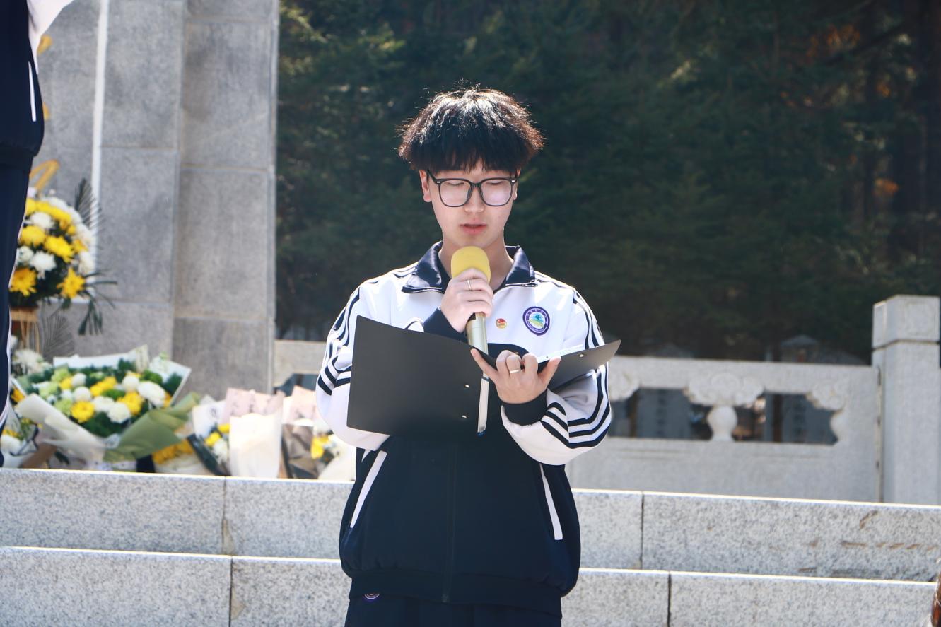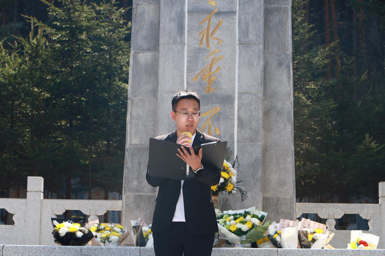 校团委宣传委员孔令辉结合革命先烈的英雄事迹,勉励全体师生铭记历史、缅怀先烈,将红色基因融入日常学习和生活,以先烈为榜样,锤炼品格、增长才干。