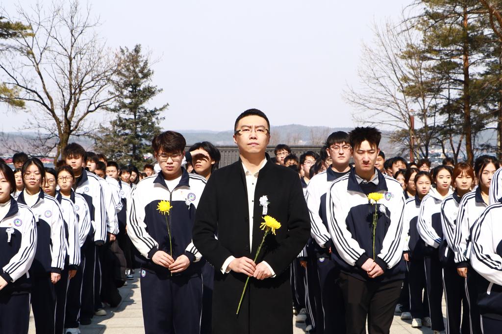 仪式结束后,全体师生缓步走向烈士纪念碑,将手中的鲜花摆放在纪念碑前,向革命先烈致以最诚挚的敬意。