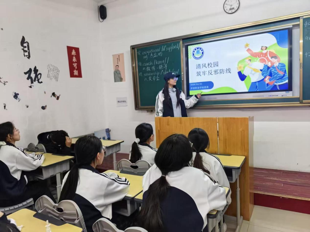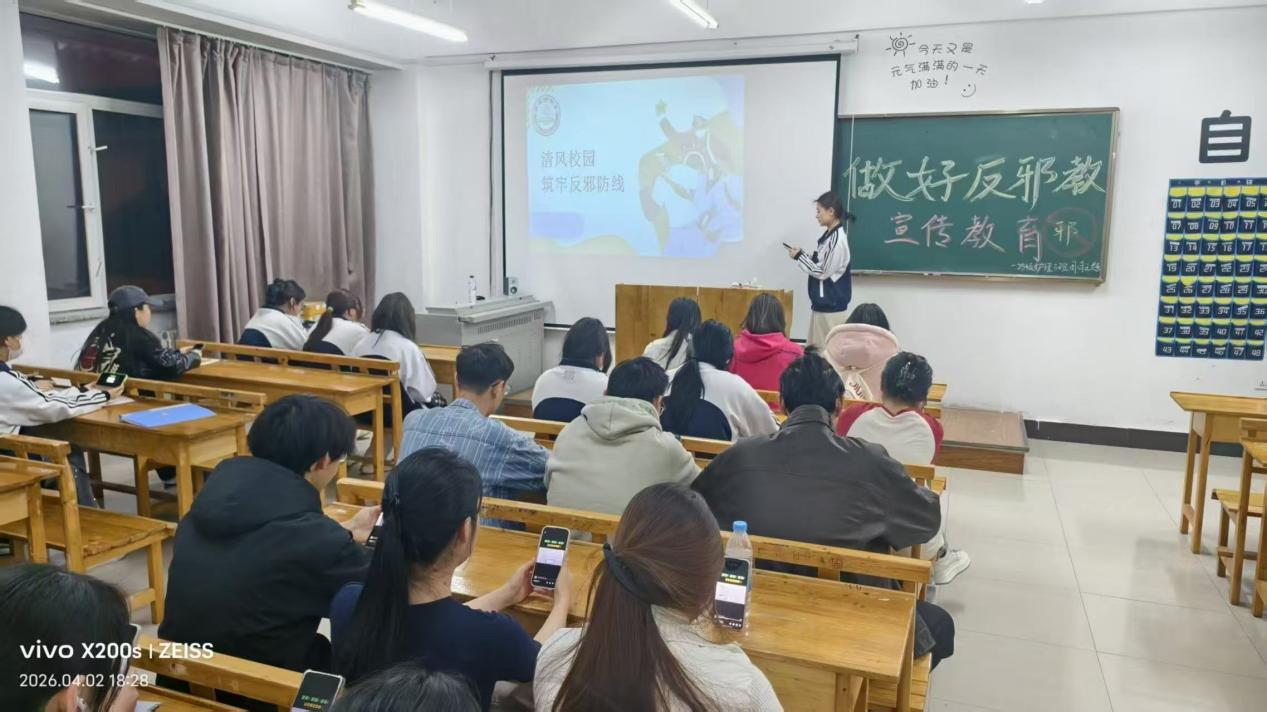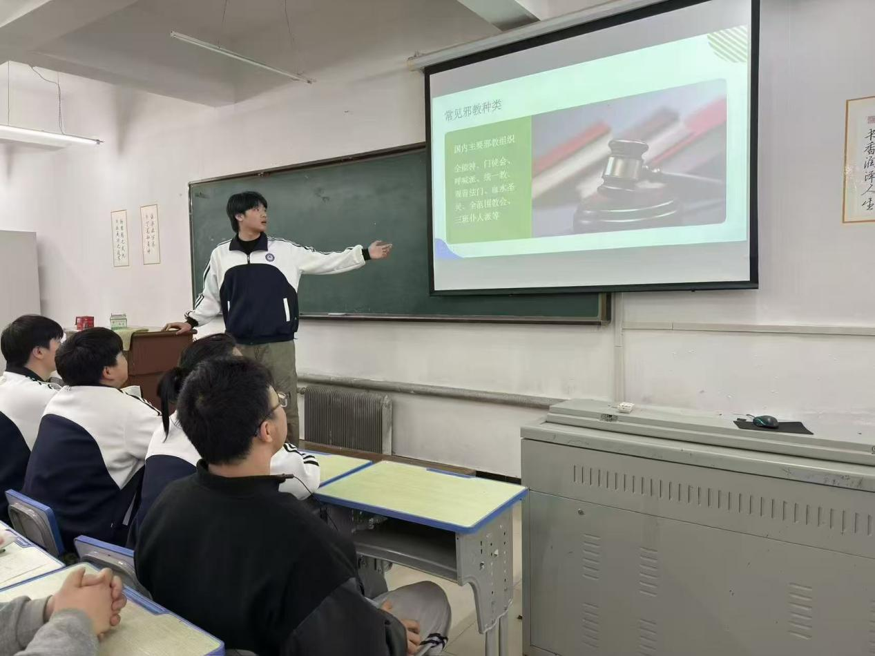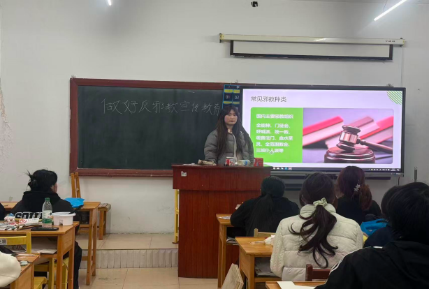 观看视频后,各班级团支书接过“宣讲接力棒”,结合精心制作的PPT,从法律、心理、社会等多个维度,对反邪教知识进行了系统深入的讲解。他们用青年的话语、身边的案例,详细解读了邪教与宗教的区别、邪教的常见拉拢手段以及遇到邪教活动时的应对方法。