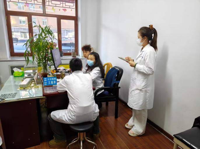 见习期间,学生们观摩了王瑞萍主任为一名失眠患者诊疗。四年前,该患者因失眠面容憔悴、畏惧针具,王主任放弃针刺方案,改用中药调理搭配茉莉香囊安抚;如今患者主动接受针药并用,王主任结合病例,为学生细致讲解“安神定志法”的穴位选择与针法,指导学生通过揉按神门、太溪穴安抚患者情绪。学生们屏息观摩施针过程,目睹王主任精准操作、温柔安抚,深刻体会到医者不仅要辨症施针,更要读懂患者的惶恐、接住患者的信任。