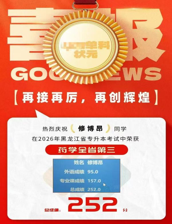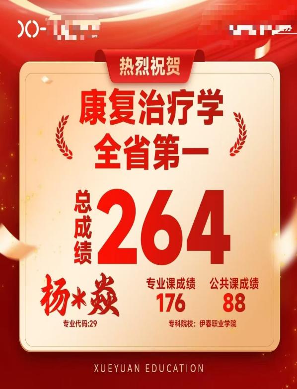在全省众多考生中,我院学子表现尤为突出,斩获多项佳绩:中医康复技术专业杨富焱同学以 264 分高分荣获全省第一名;药学专业修博昂同学以 252 分荣获全省第三名。