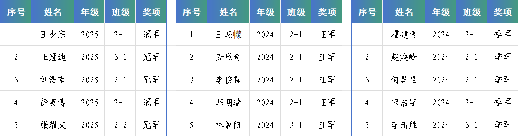 经过多轮激烈角逐,各队伍凭借过硬的竞技水平和默契的团队配合脱颖而出,最终决出冠军、亚军、季军队伍各1支,并为获奖队伍颁发荣誉证书。