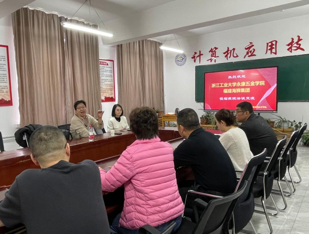 会上,计算机应用技术学院代表对浙江工业大学永康五金学院及福建海狮集团一行的到来表示热烈欢迎,并简要介绍了学院的发展概况、专业设置及近年来在产教融合方面取得的成效。浙江工业大学永康五金学院、福建海狮集团代表分享了其在应用型人才培养、产业学院建设等方面的经验做法,围绕企业人才需求、校企协同育人模式等内容进行了交流。