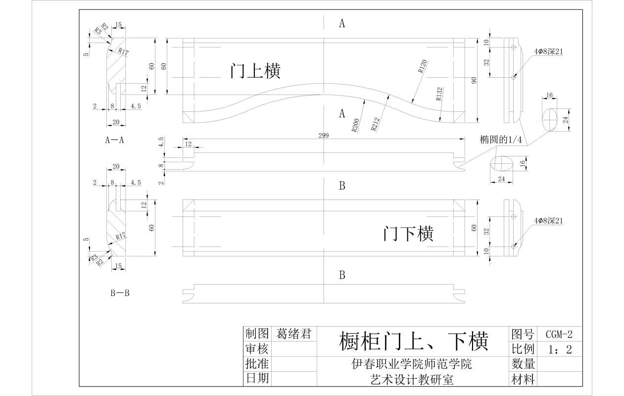 第二期作品:橱柜门设计图细节考量周全,造型简约大气,工艺严谨精细,兼顾颜值与实用性,贴合居家生活的核心需求,打造出兼具装饰感与便捷性的橱柜门设计方案,充分体现了精准绘图的专业素养和以人为本的设计理念。
