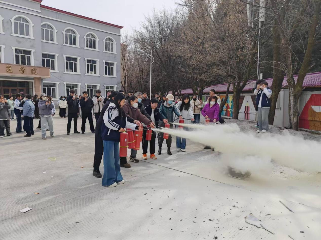 为进一步强化校园安全管理,提升教职工及学生骨干的消防安全应急处置能力,普及消防器材实操使用知识,有效防范和应对校园火灾事故,4月3日,学校保卫处联合学工部组织新入职教师、公寓管理员、部分学生干部及安全疏散员开展了灭火器实操演练活动,切实筑牢校园消防安全“防火墙”。