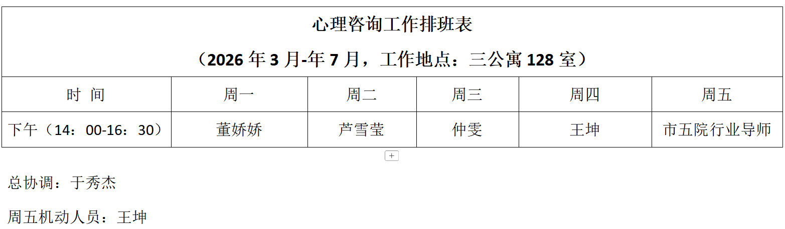 1.心理咨询工作排班表