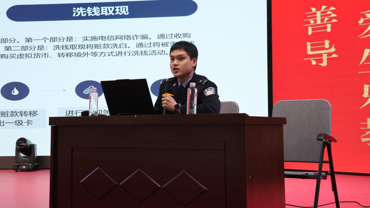 讲座中,公安民警结合当前社会治安形势和高校学生实际,用真实鲜活、触目惊心的典型案例,以案释法、以法析理,重点围绕毒品危害、新型毒品伪装识别、禁毒法律法规、防范电信网络诈骗、校园消防安全、交通安全、日常自我防护等内容进行全面讲解。民警用通俗易懂的语言,详细介绍了毒品对个人、家庭和社会的严重危害,提醒同学们警惕“奶茶杯”“跳跳糖”“巧克力”等伪装成零食的新型毒品,自觉做到识毒、防毒、拒毒,坚决不触碰法律红线。同时,针对校园高发的刷单诈骗、冒充客服退款、网络游戏诈骗等类型,民警细致讲解了诈骗手段、识别方法和应对措施,引导学生提高警惕,守住“钱袋子”,遇到可疑情况及时报警求助。