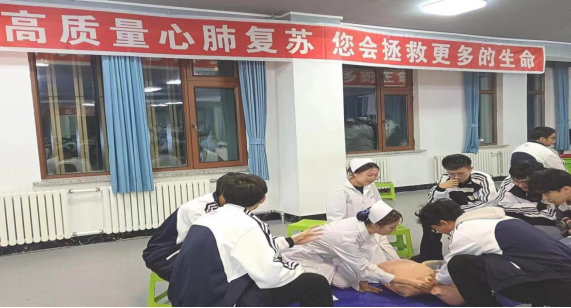 为推进党建与事业发展“一融双高”,护理学院组建“救在身边,成救你我,健康伊春”心肺复苏志愿服务队。自2023年3月份组建以来,已培养校内急救小导师100人,为社区居民及企业进行心肺复苏志愿服务10余场,培训近1000人次。