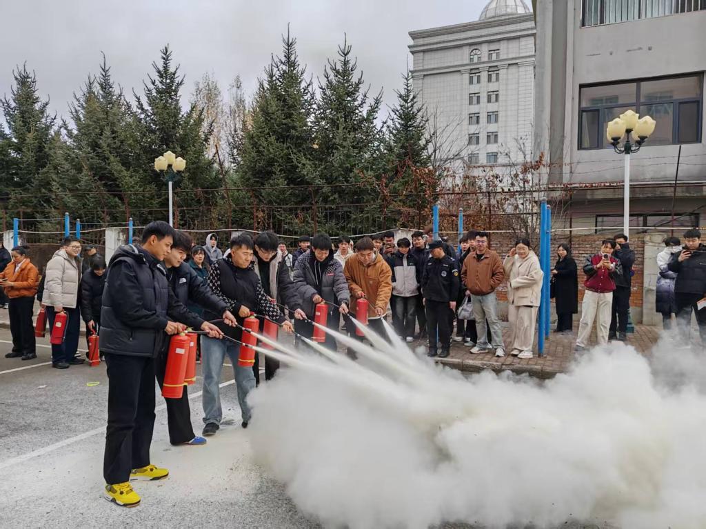 保卫处程生志演示了灭火器的使用方法,讲解了使用灭火器的注意事项,针对性地纠正了同学们使用灭火器过程中存在的问题并普及了消防知识。同学们在专业人员的指导下按照“一提、二拔、三握、四压”的步骤进行实操,成功使用灭火器完成了灭火任务。
