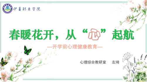 春已至,万物始,在这样一个充满生机活力的季节里,我们迎来了满载希望的2023年春季学期,新学期,新起点,新气象,为帮助同学们做好开学心理调适,以轻松健康的心情迈入新学期,更好地融入校园生活,提升心理健康水平。我校在开学初期开展了以《春暖花开,从“心”起航》为主题的“心理健康教育第一课”活动。