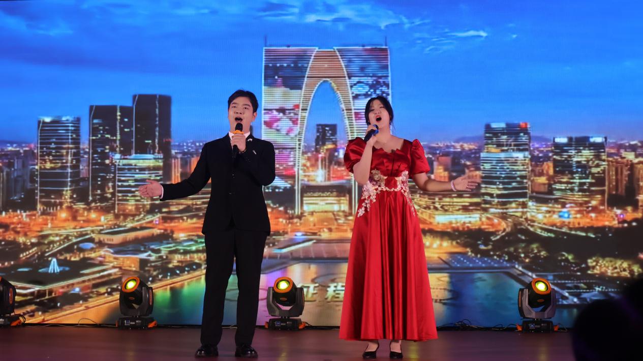 演出在开场舞《盛世欢歌》中拉开帷幕,欢快的节奏、灵动的舞姿瞬间点燃了现场气氛。紧接着,旅游商务学院的周万睿带来歌曲《新征程》,用歌声传递出青年奋勇向前、踏上新征程的豪迈之情。