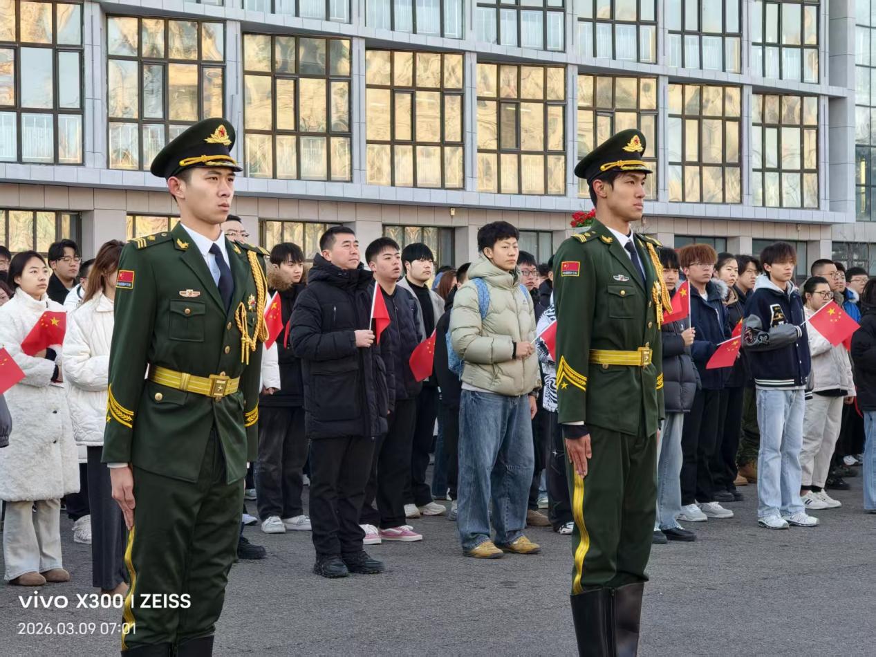 3月9日7时,开学第一天,在明德楼前举行“策马踏春风,逐梦启新程暨新学期开学第一课升旗仪式”
