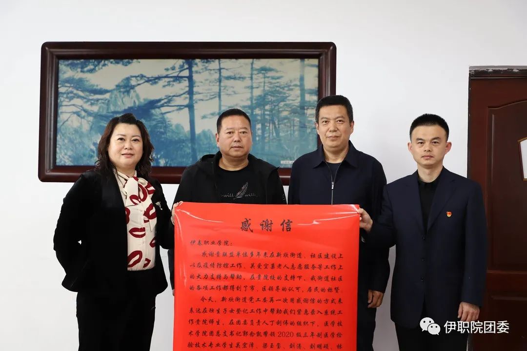 感谢信称,随着新欣街道所辖的新欣社区和前进社区的建设与发展,伊春职业学院始终与新欣街道建立并保持着良好的联盟合作关系。近年来,我校师生在新欣街道、社区建设上以及在疫情防控工作、关爱空巢老人等方面都给予了大力支持与帮助。