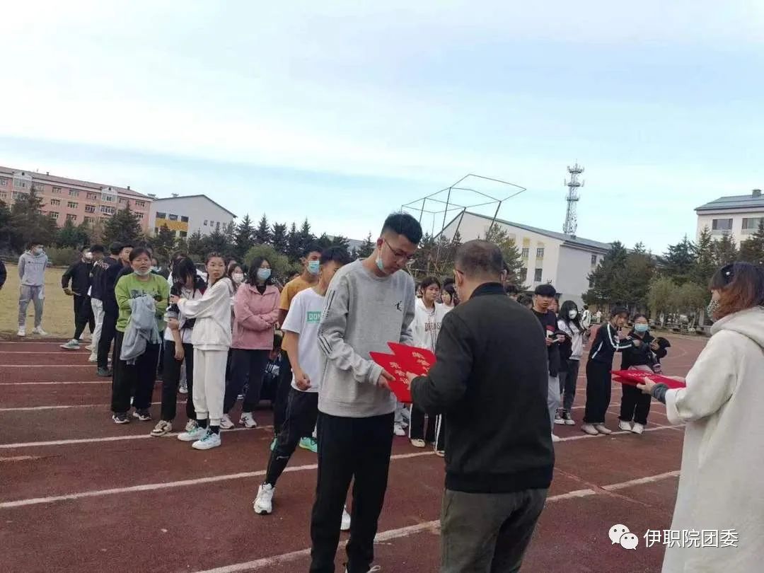 金秋十月,金毡铺地景斑斓,五花山色美自然。10月8日,伊春职业学院开展“喜迎二十大、永远跟党走、奋进新征程”主题秋季场地接力赛活动。十月的小兴安岭,秋高气爽,十月的校园,生机勃勃。下午2时,“光荣啊!中国共青团”的歌声穿透校园的每个角落,一群充满朝气和活力脸庞出现在校园体育场——随处可见学生会忙碌准备的身影、运动员在摩拳擦掌做着热身运动,观众席有序入场就坐,抬出锣鼓、搬出音箱、准备为自己的代表队加油、呐喊、助威。整个校园一片生机、一片喜庆。