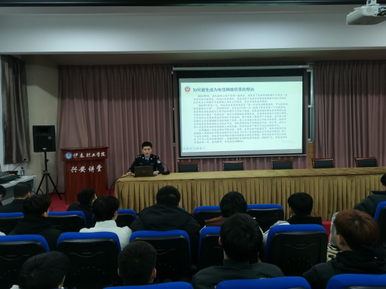 为切实提升学生识诈、防诈、反诈意识和能力,3月6日18时30分,我校保卫处、学工部邀请伊美区公安局刑侦大队、辖区西城派出所民警到学校开展开学季“反诈宣传”专题讲座。讲座在学校图书馆一楼会议室举行,二级学院各班级班长、学生代表聆听讲座。