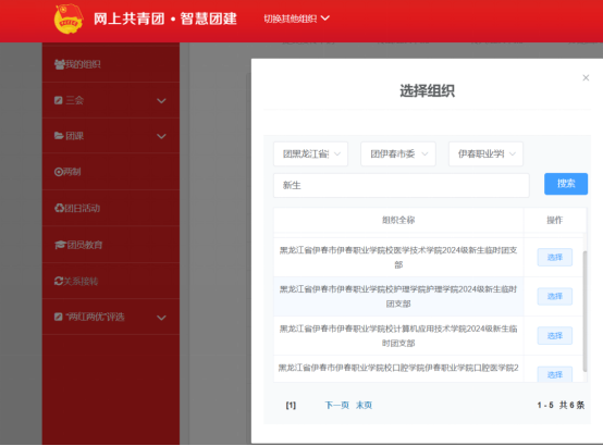 ③申请转入组织:选择“团黑龙江省委”“团伊春市委”“伊春职业学院校团委”各二级学院2024级新生团支部(具体名称如下图),地址:伊春市、伊春区新兴西大街65号。