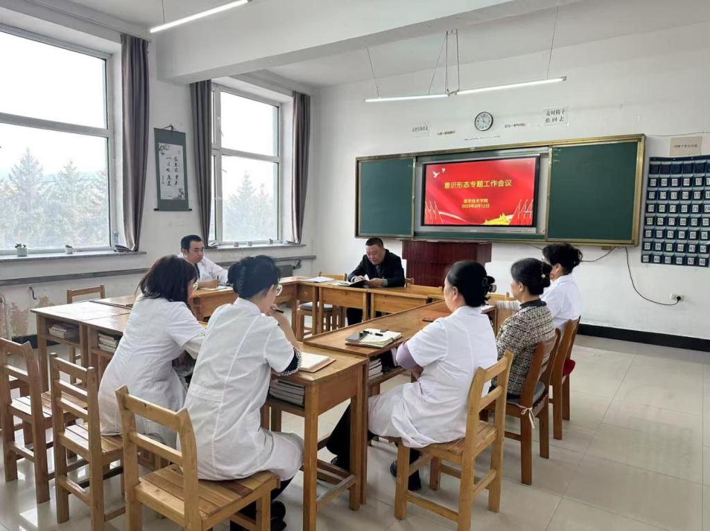 2025年3月12日,医学技术学院党支部组织召开意识形态工作专题会议,深入学习贯彻习近平总书记关于意识形态工作的重要论述,落实学校党委关于加强新时代高校意识形态工作的部署要求。学院领导班子成员、全体党员教师参会。