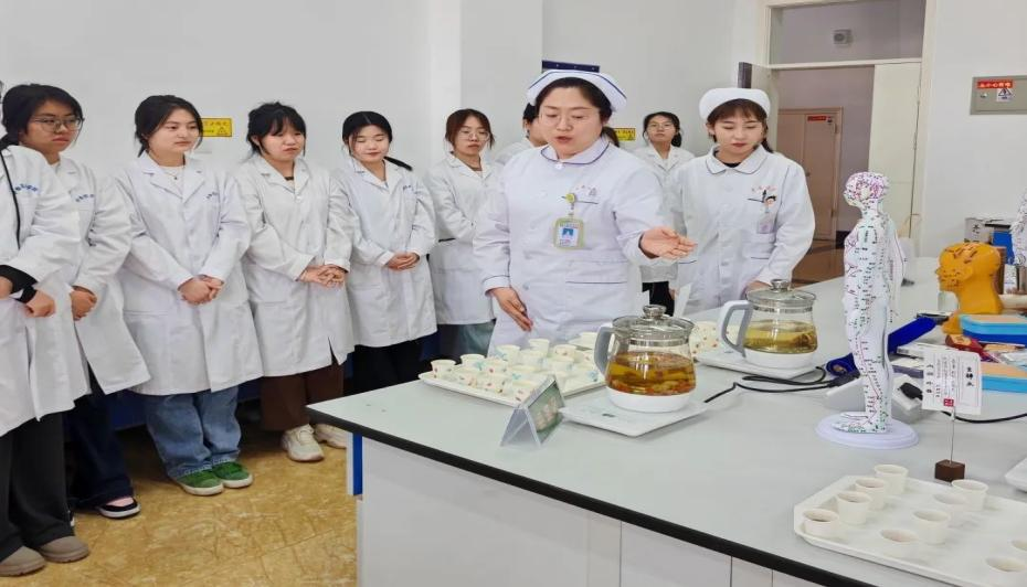 在刺法灸法实训室内,沉浸式体验课掀起热潮。中医医院护理团队现场展演耳穴压豆、眼部刮痧等适宜技术,指尖翻飞间尽显中医技法的精妙。学生们亲执器具,在触感交互中体悟“法从手出,效从心生”的奥秘。养生茶品鉴台前,决明子、枸杞、陈皮等药香袅袅,通过“嗅闻其香、品咂其味、观色其形”的多维体验,让“药食同源”理念可感可触。护理骨干示范香囊制作时,细剖苍术、藿香等药材的配伍玄机,让抽象医理化作手中香囊,成为可随身携带的文化符号。