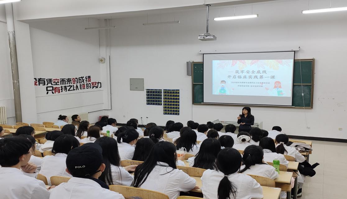 “安全是实习的底线,更是从医的生命线。”韩金华在开场中强调。针对出行安全,她结合季节特点特别提醒,要警惕道路结冰风险,严格遵守交通规则,学院将为每个见习班级配备专业课教师全程监督指导,切实筑牢安全屏障;医疗操作规范是会议聚焦的核心,韩金华明确要求,学生在见习中必须在带教老师全程指导下开展工作,严格执行无菌操作规范,不得擅自进行临床操作,特别注意个人人身安全防护。