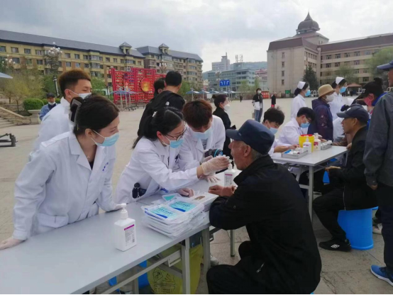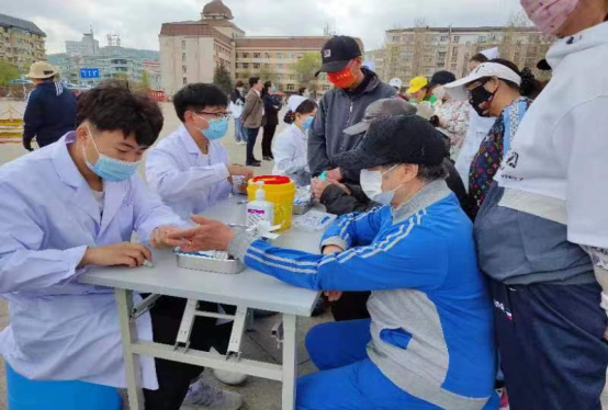 技能展示结束后,师生们现场为群众进行了血压测量、血糖测量、口腔健康检查、血型鉴定,科普了高血压、糖尿病等常见疾病的预防知识,一对一进行心肺复苏技能指导,积极鼓励群众参与海姆立克急救法互动体验。