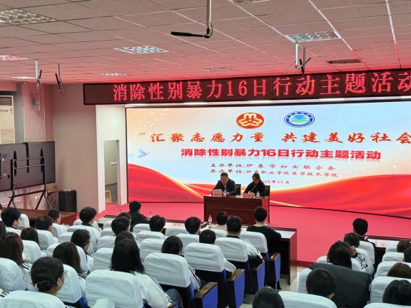 为增强青年学生防范性别暴力的意识和能力,营造尊重平等、法治文明的校园氛围,11月25日,伊春市妇女联合会联合伊春职业学院医学技术学院,在明德楼616会议室共同举办了“消除性别暴力 青春与法同行”16日行动主题活动。