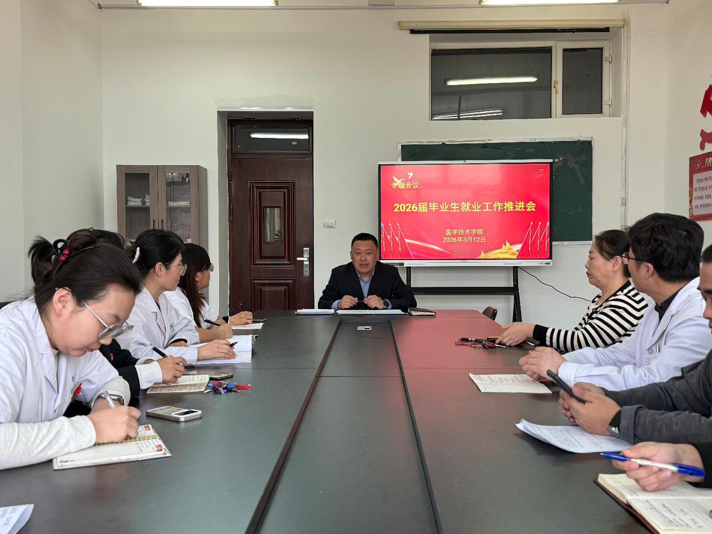 面对当前严峻复杂的就业形势,医学技术学院高度重视毕业生就业工作,多次专题研究、部署推进就业重点任务。3月12日,学院召开2026年3月就业工作推进会,总结前期工作成效,安排部署下一阶段就业攻坚任务,全力推动毕业生尽早就业、充分就业。
