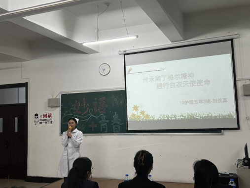 为迎接国际护士节的到来,宣传、培养和弘扬护理精神,丰富学生校园文化生活,5月9日晚,护理学院举办了“青春无悔展风采,天使逐梦践使命”主题演讲比赛。演讲中,选手们声情并茂,有的诉说身边的护理感人故事,有的阐述南丁格尔精神的深刻内涵,同学们从不同方面表达了自己对护理精神的理解与感悟,对传承南丁格尔精神的信心和决心。