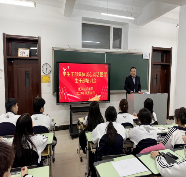 为进一步做好学生干部培训工作,强化思想引领,充分发挥学生干部的示范带头作用,加强学生干部和学院间的桥梁纽带作用,持续加强学风建设,推进学生干部队伍建设,11月20日,我院在一号教学楼222教室举行院党支部书记与学生干部集体谈心谈话暨学生干部培训会。院党支部书记孙晓会、部分辅导员老师以及全体学生干部参加本次活动。