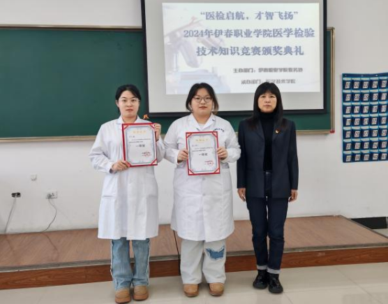 2024年12月份医学技术学院中医康复技术专业、药学专业以及医学检验技术专业均顺利地完成了各自领域的知识技能大赛。这些大赛不仅为学生们搭建了展示专业技能和知识水平的舞台,更像一把钥匙,引领他们深入探索专业知识,激发了他们学习的无限热情。12月23日,这一系列大赛的颁奖活动隆重举行,医学技术学院院长韩金华、副院长许红柳出席,为三个专业的优秀学生颁发了奖项,以表扬他们在大赛中取得的优异成绩。