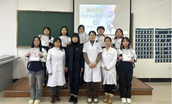 药学技能大赛一等奖张玉萍,二等奖李玲玲、 陶晶晶,三等奖惠浩莹、高秀清、耿悦伟,优秀奖何兵。