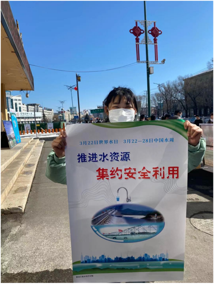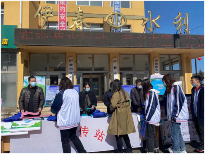 在活动中,水务局领导为学生发放节水手册,讲述节水知识,水务局专家与学生代表针对普及大学生节水知识进行座谈。在座谈会中,同学们和专家谈论了我国人均用水量的多少,并且就伊春市自来水过滤工序问题展开讨论,从而扩大了同学们对伊春市的了解。