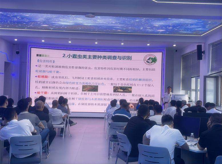 本次培训特邀东北林业大学迟德富教授为学员详细地讲解了钻蛀害虫种类及识别方法,并邀请行业领域专家介绍了松树钻蛀害虫调查范围、调查内容和样地调查方法等内容。通过理论讲解与实地操作相结合的方式,全面提升学员的专业技能,为科学开展松树钻蛀害虫系统调查工作筑牢技术基础。
