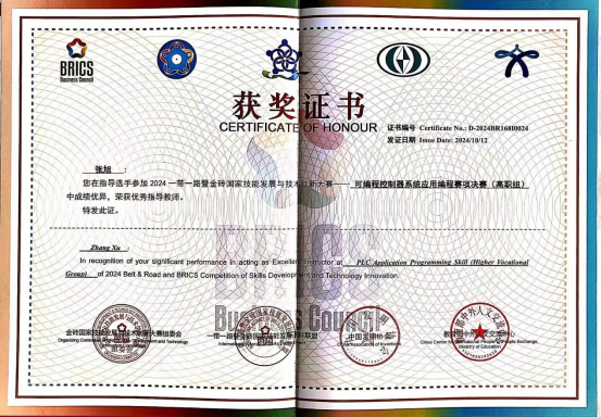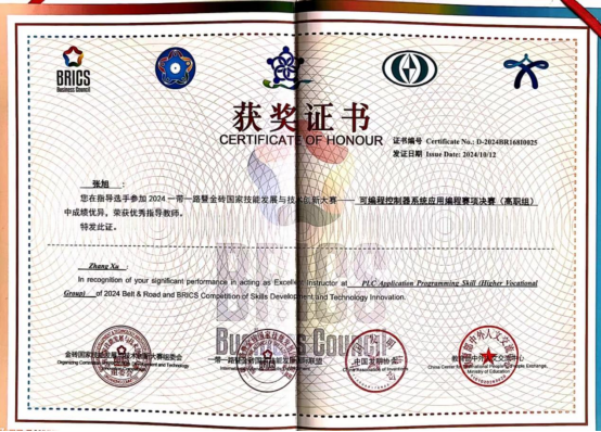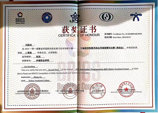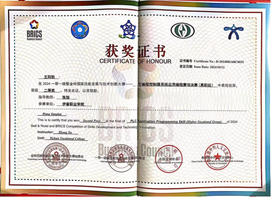 10月9日-12日,在2024年一带一路暨金砖国家技能发展与技术创新大赛之可编程控制器系统应用编程赛项国内决赛中,工程应用技术代表队荣获二等奖(银牌)。