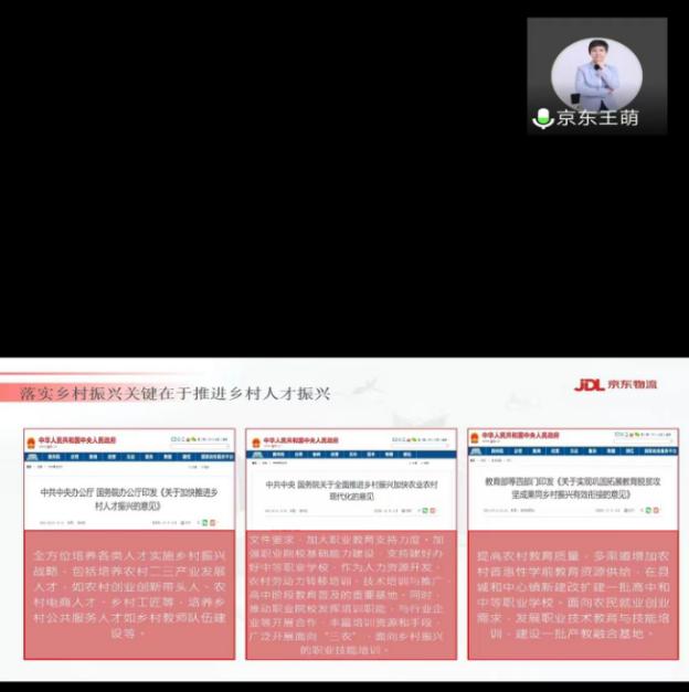 线上交流会上,京东物流负责人介绍了公司相关情况,京东物流作为上市公司是中国领先的技术驱动的供应链解决方案及物流服务商,服务范围覆盖了中国几乎所有地区、城镇和人口,对我院电子商务专业人才的需求量十分大。