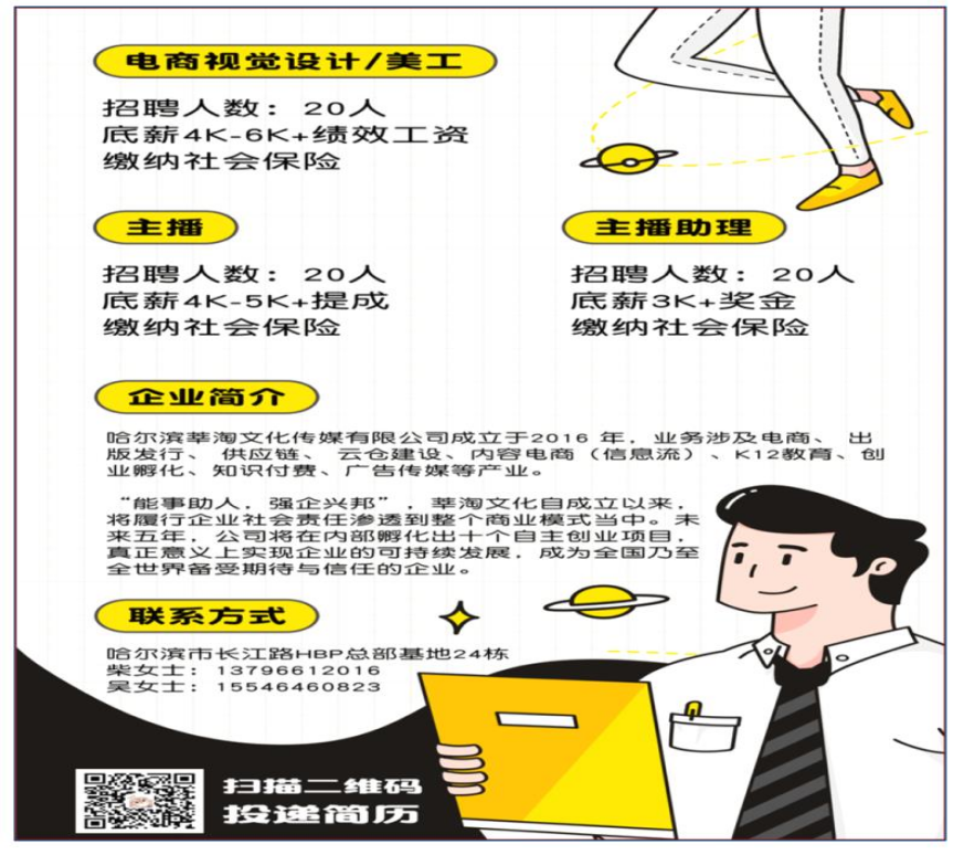 2021年6月17日下午2点,莘淘文化传媒有限公司来到学院给应届毕业生进行实习就业指导讲座。哈尔滨莘淘文化传媒有限公司成立于2016 年,业务涉及电商、 出版发行、 供应链、 云仓建设、内容电商(信息流)、K12教育、创业孵化、知识付费、广告传媒等产业。未来五年,公司将在内部孵化出十个自主创业项目,真正意义上实现企业的可持续发展,成为全国乃至全世界备受期待与信任的企业。