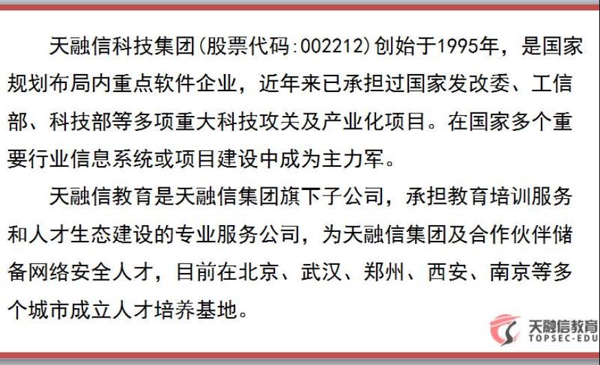 天融信教育集团韩老师结合自己公司业务给同学们进行实习讲解:
