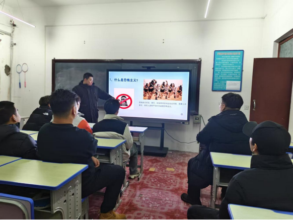 班会上,各班班长围绕恐怖主义的定义、特点及危害等方面展开详细的讲解,通过播放图片、视频等方式让同学们直观地感受到恐怖活动的残酷性和破坏性。