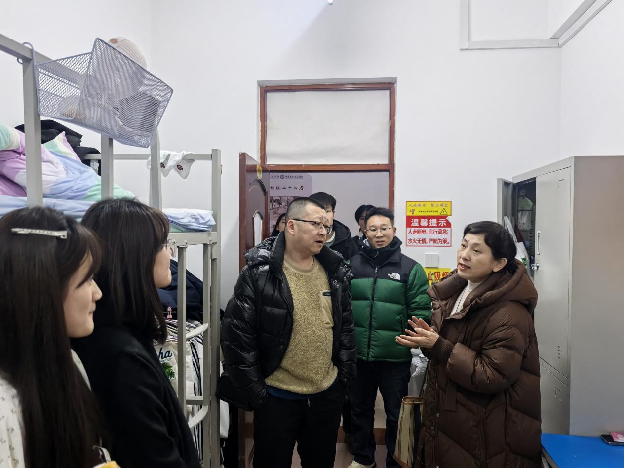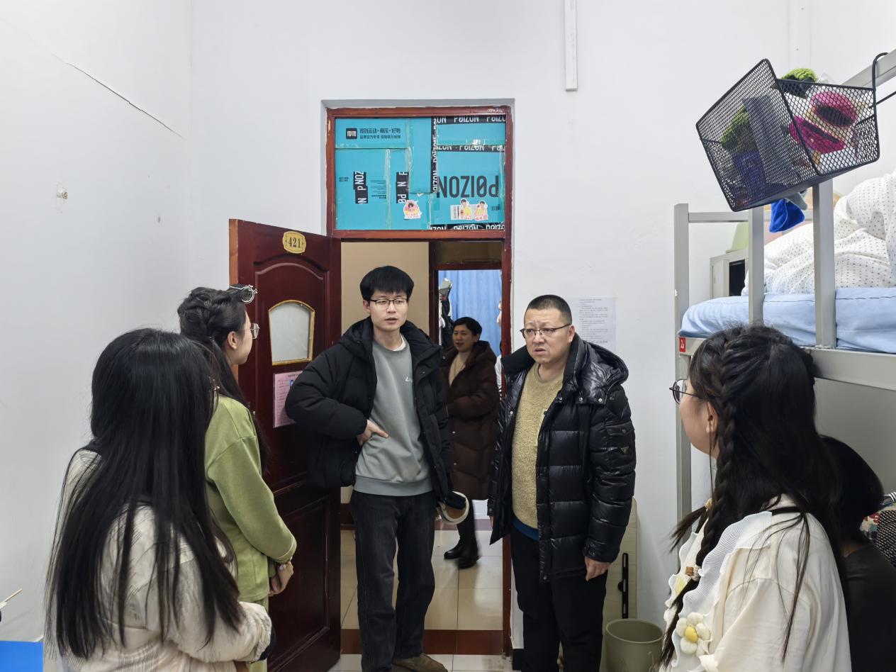 走访过程中,老师们仔细查看了宿舍卫生环境与用电安全情况,并叮嘱同学们在考试期间要合理安排作息,离校时要注意个人财物安全,务必锁好门窗,将贵重物品妥善保管,假期遇到困难及时与辅导员沟通。