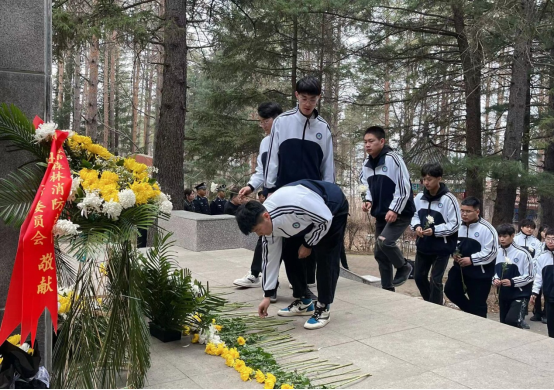 松柏苍翠映陵园,丰碑矗立怀英魂。在纪念碑下学生代表全体肃立,默哀三分钟,深切缅怀在小兴安岭这片英雄的热土上奉献一生的革命先烈,深深表达着每个青年“生逢盛世当有为”的决心和感恩之情。