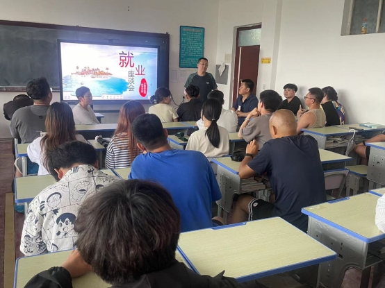 首先,贾玉罡介绍了本次外出考察南方企业对于人才需求情况,并对带回的千家企业做了简要说明,从学生的实际现状出发,与同学们进行了互动交流。从同学们目前存在的困难、个人就业意向、未来目标等方面深入了解学生当前思想状态,对每个学生情况,有针对性地进行分析,并提出建议,鼓励学生要充分准备、主动应聘、积极实习。