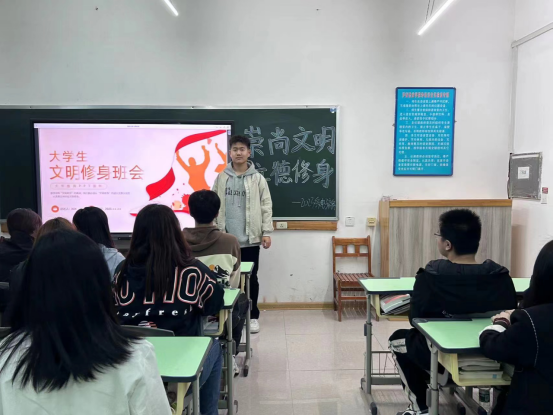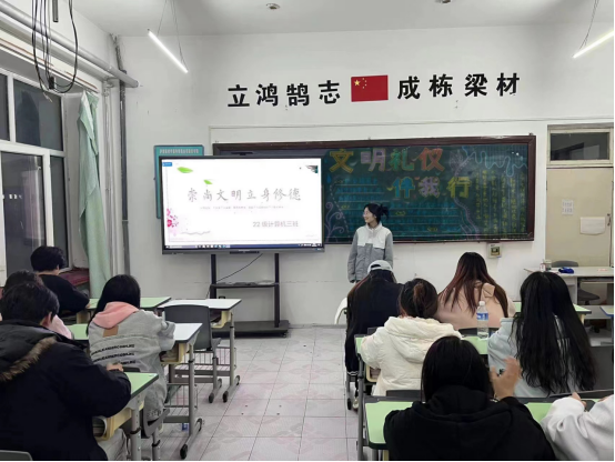 树文明之风,践文明之行,为进一步强化学生文明礼仪意识,引导广大学生树立正确的文明礼仪观念,养成良好的行为习惯,3月28日,计算机应用技术学院各团支部开展了“崇尚文明 立德修身”主题班会。