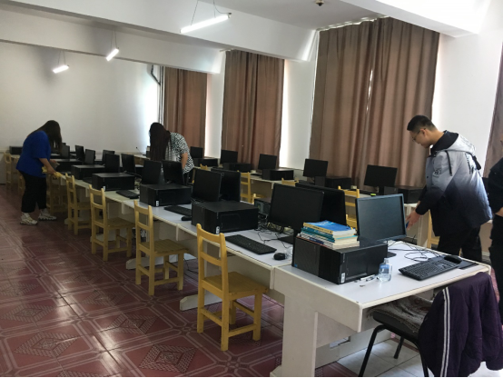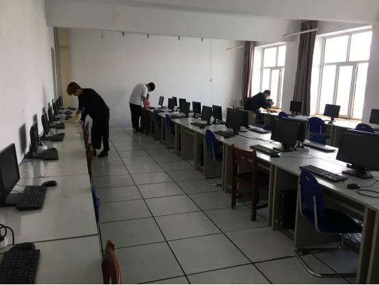 辅导员和机房管理员带领学生对教室、实训室、寝室进行打全面的清洁和消杀,保证师生健康安全。