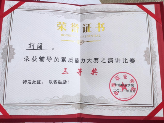 计算机应用技术学院辅导员刘闯荣获三等奖